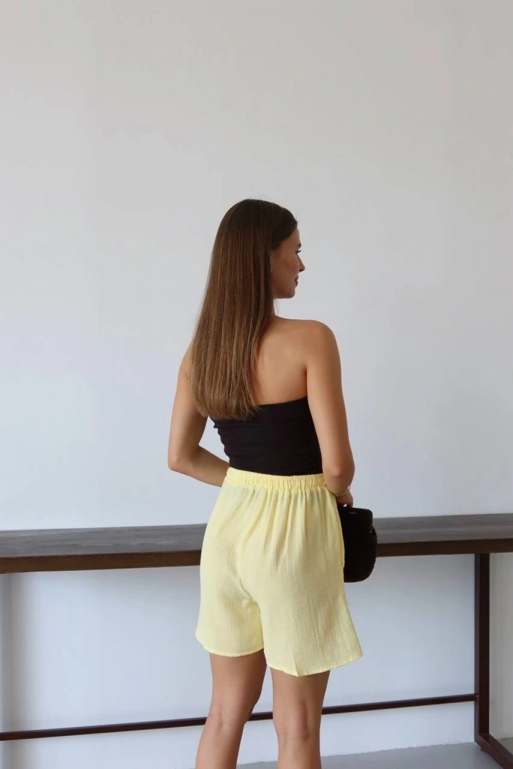 • Müslin kumaş şort bağcıklı sarı pt