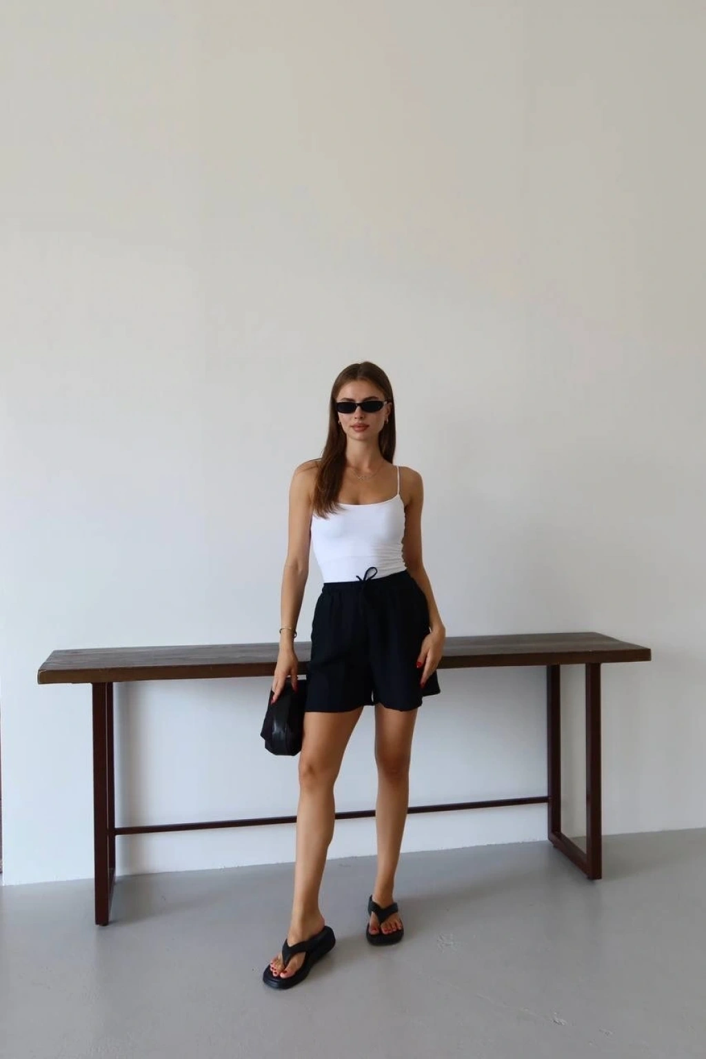 • Müslin kumaş şort bağcıklı siyah pt