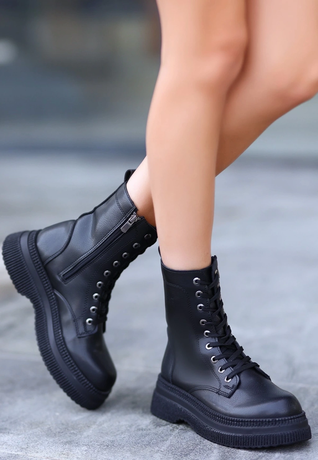 • Roxan Siyah Cilt Bağcıklı Bot